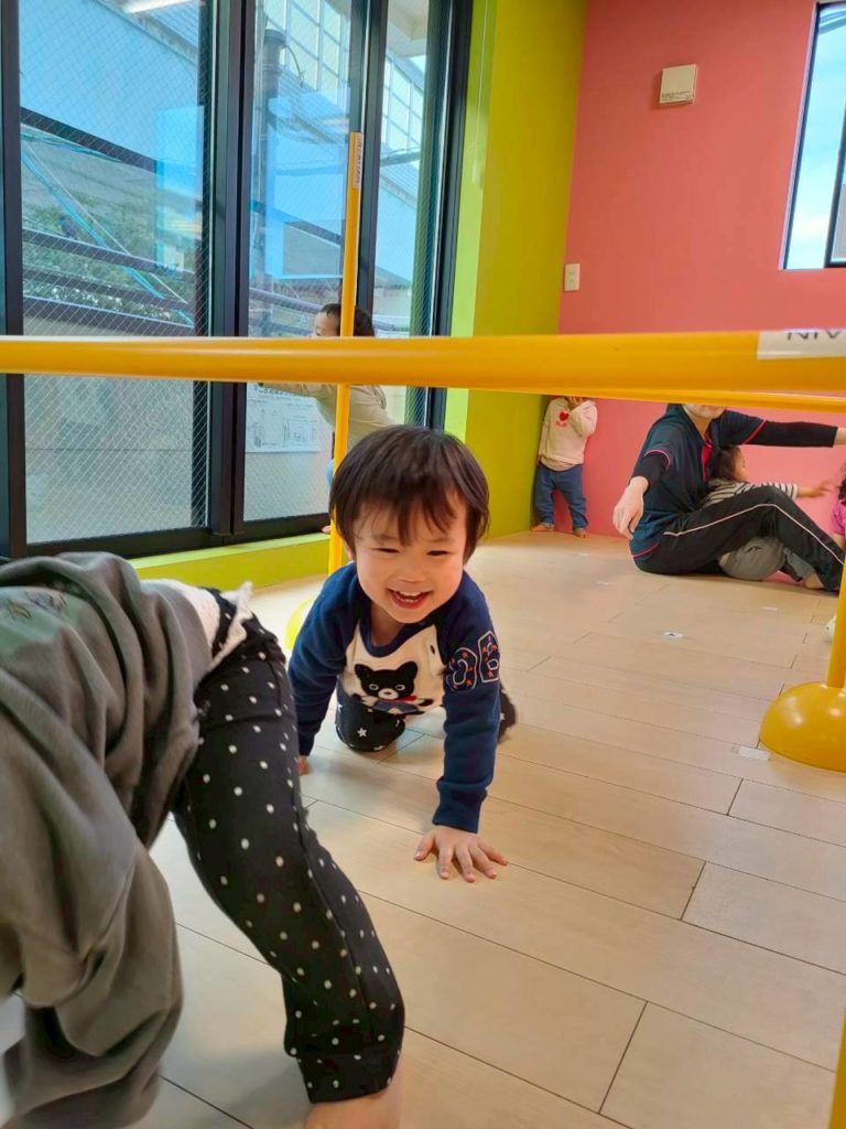 トンネルをくぐった後は、リングジャンプをしています!まだ両足で跳ぶことはできていませんが、片足で踏み切ることは出来ています!どんどん挑戦していきます!