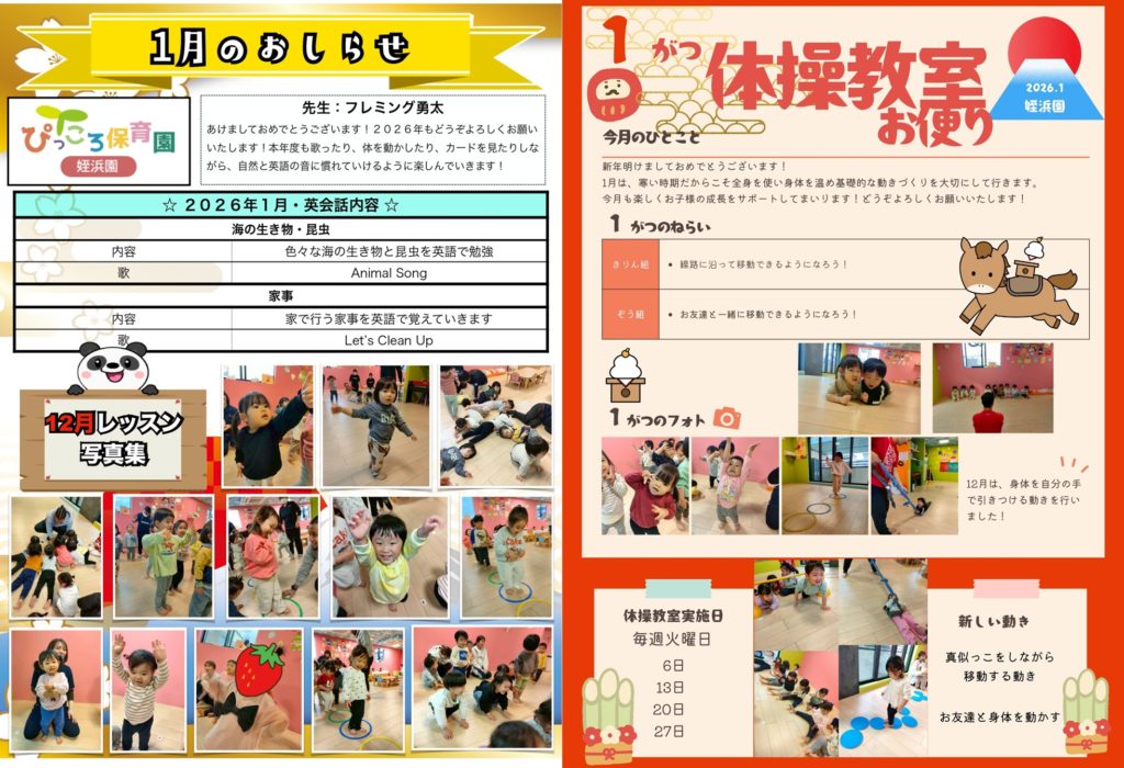 1月のおしらせ