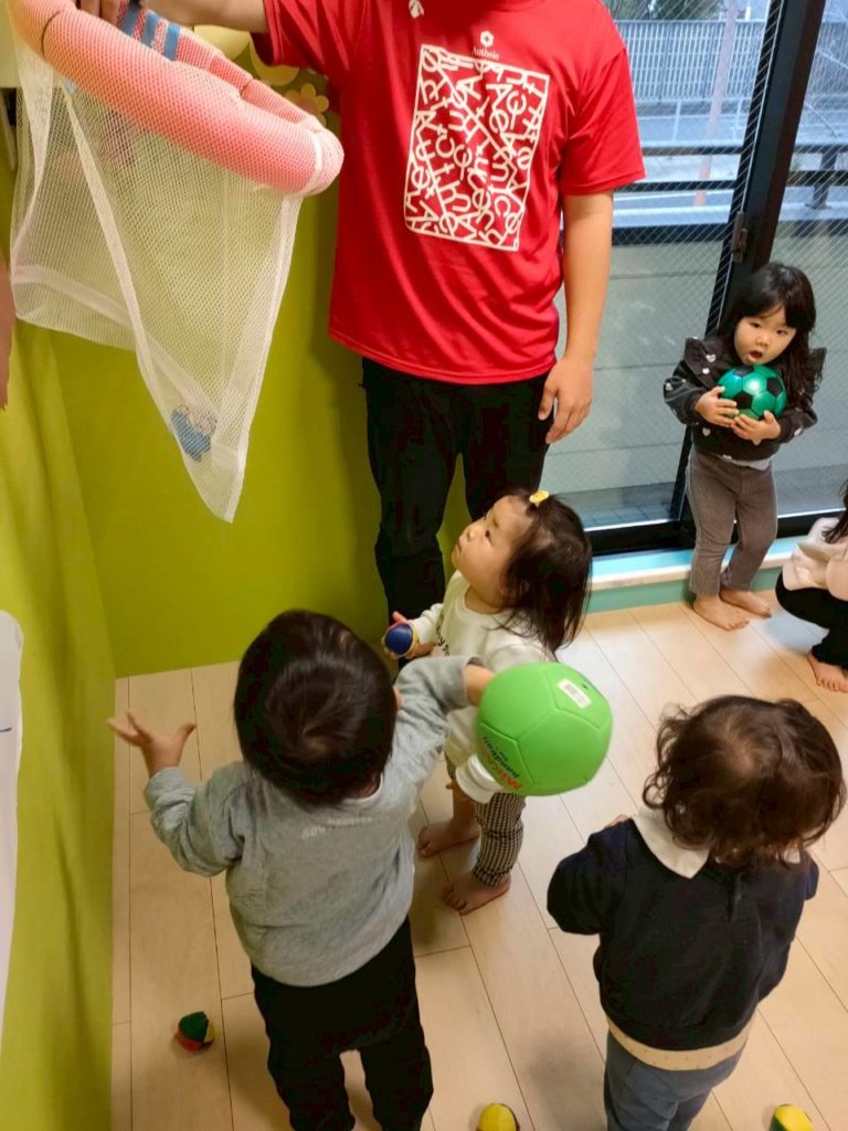 高いところにボールを投げる練習しました!