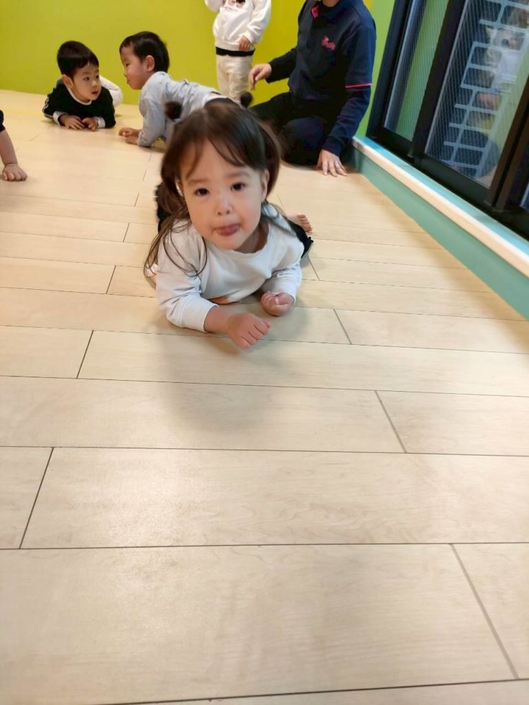 ワニさん歩きで、手と脚を互い違いに使えるようになってきました!