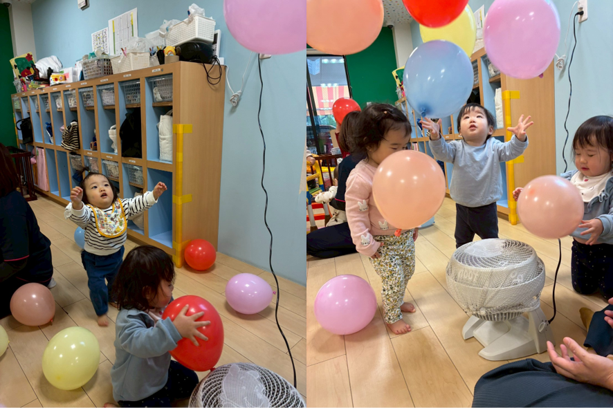 いつもと違う扇風機を使った風船遊びに大興奮♡